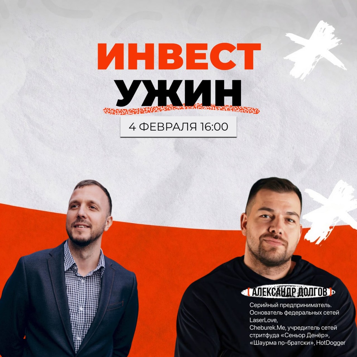 УЖЕ НА ЭТОЙ НЕДЕЛЕ 4 февраля · Москва Закрытый инвест-ужин на 80 человек. Без теории и мотивационных речей. Только практики, реальные сделки и работающие контакты. 🎙 Хедлайнер: 🔹 Александр Долгов Серийный предприниматель. Создатель федеральных сетей LaserLove (227 точек) и Cheburek.Me (350 точек). Практик масштабирования и тиражирования бизнес-моделей. 🎙 Спикеры: 🔹 Сергей Леонидов Основатель финмаркетплейса «Сравни.ру». Соучредитель ВкусВилл Казахстан, вице президент Тинькофф. 🔹 Сергей Ореханов 20+ лет в инвестициях. Участие и привлечение капитала в 250+ проектов. Основатель клуба инвестиционного нетворкинга, эксперт ТПП РФ по инвестициям. 🔹 Илья Ивахин Заместитель директора по привлечению финансирования Фонда «Сколково». Бизнес-ангел, венчурный партнёр. Работает с технологическими компаниями и стартапами, привлекающими капитал. Независимый директор и член советов компаний «Арман Групп» и «Альтаирика». Связывает бизнес, инвесторов и институциональные деньги. 🔹 Василь Гази