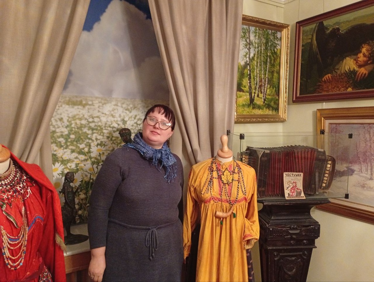 Я думала, что знаю про Есенина почти всё — пока не оказалась в доме, о существовании которого даже не подозревала. И так про литературно-музыкальный квартирник подробнее. Название поэтичное: «ТОТ ОБРАЗ ВО МНЕ НЕ УГАС…» (Любовь в жизни и творчестве Сергея Есенина). Нам рассказали и напомнили биографию Есенина и почему именно в этом доме музей. Был период, когда я была увлечена биографией Есенина. Тогда это было связано с книгой, которая встретилась мне про Айседору Дункан. Название не помню. Помню, что не с Есенина началось изучение, а с Айседоры. Я была в Константиново. В доме его родителей. А вот в доме его первой гражданской жены нет. И даже не знала о существовании музея. Был интересный рассказ экскурсовода и между рассказом было выступление певицы театра «Театр Трёх Муз». На гитаре она нам пела песни на стихи Есенина и не только его. Они прекрасно звучали и с гитарой. А также для меня было открытием, что Есенин написал и частушки. Книга на фото рядом с гармошкой. Вначале их сп