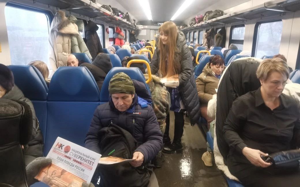 Активист штаба НОД г. Новосибирска "За Суверенную Россию" Любовь распространила 300 газет НК-Суверенитет в электропоезде, который следовал