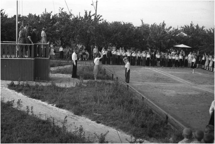 В «кружках» можно было заниматься рисованием, декламированием, постановкой любительских спектаклей, пением, танцами, шахматами, вышивкой, кройкой и шитьём. Гимнастический, футбольный, волейбольный и «городошный» «кружки» собирались на обширной спортивной площадке, на которой также каждое утро и вечер проходила «линейка»-церемония подъёма с спуска лагерного флага с обязательными рапортами «вожатых» начальнику лагеря или старшему «вожатому». Старший «вожатый» был точным воплощением ленинско-сталинского принципа партийного руководства народными массами, отвечая за нравственное воспитание молодняка в духе идей коммунизма. Эта схема выполнялась на любом уровне, так что во главе каждого отряда стоял отрядный «вожатый» в паре с воспитателем. Дня через три после приезда на этой площадке состоялось торжественное «открытие» лагеря, с речами и благодарностями товарищу Сталину «за наше счастливое детство», пионерскими песнями и заключительным пионерским костром. Я уже кое-что понимал в шахматах, наблюдая в «пожарке» за поединками некоторых, особо «продвинутых» бойцов, поэтому сразу же записался «на шахматы», но меня кроме этого привлекал и футбол, но из «малышового» отряда путь туда был закрыт.