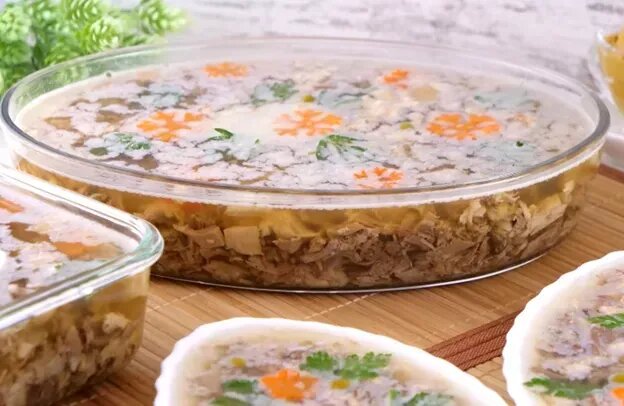 Для приготовления холодца можно использовать различные виды мяса: говядину, свинину, курицу, индейку или их комбинации. Важно помнить, что желатин добавлять не следует — застывание должно происходить естественным путем.
