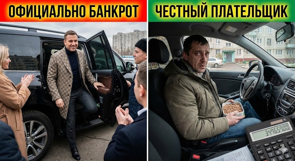 Каждое утро во дворе моего дома разыгрывается одна и та же сцена. Мой сосед, назовем его Игорь, выходит из подъезда в дорогом пальто, садится в черный Land Cruiser 300, и вальяжно уезжает по делам. Соседи шепчутся: «Бизнесмен, крутится, молодец». Бабушки у подъезда провожают его уважительным взглядом. А через десять минут выходит Андрей. У Андрея старенький «Солярис» в кредит, серый пуховик и пакет с судочком гречки на обед. Андрей выглядит уставшим. Он работает на двух работах, чтобы закрыть платежи по кредиткам и ипотеке. Парадокс в том, что Андрей платит банку исправно. А Игорь должен банкам 15 миллионов рублей. Но самое смешное (и грустное) — Игорь спит спокойно. А Андрей пьет корвалол, если задерживают зарплату на два дня. Я знаю это, потому что я юрист. И я знаю, что Игорь — официальный банкрот. А Андрей — почетный носитель «синдрома отличника» и финансовый раб. Давайте разберемся, почему так происходит и почему ваша честность делает вас бедным. Я вижу таких людей каждый день на
