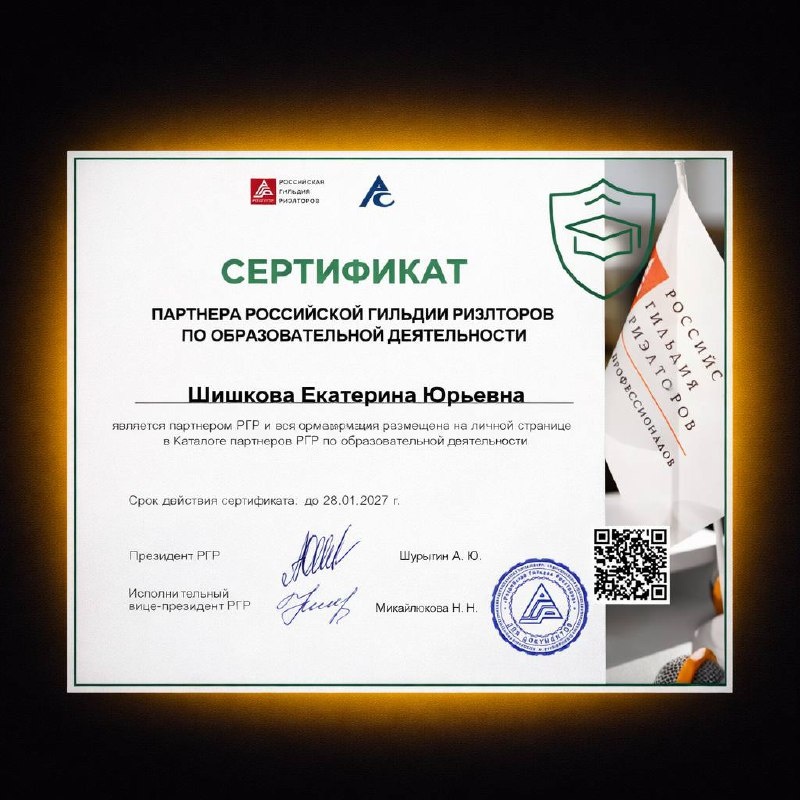 Я — официальный партнёр Российской гильдии риэлторов по образовательной деятельности. Что это означает на практике? Все образовательные продукты, которые я выпускаю — обучающие видео, марафоны, курсы — сертифицированы Российской гильдией риэлторов. А значит: • это подтверждённый знак качества, • это доверие профессионального сообщества, • это не просто авторский опыт, а обучение, соответствующее стандартам рынка. За всё время через мои образовательные проекты прошло уже более 150 учеников. И я регулярно получаю сообщения со словами благодарности — за структуру, за практику, за ощущение, что «наконец стало понятно, что и как делать». Для меня это самый важный показатель ценности работы. Потому что с самого начала моя задача — создавать такие образовательные продукты, которые реально помогают риэлторам: • особенно на старте, • когда нет возможности вкладывать большие бюджеты в маркетинг, • когда важно выстроить свои каналы и социальные сети и начать привлекать клиентов сейчас, а не