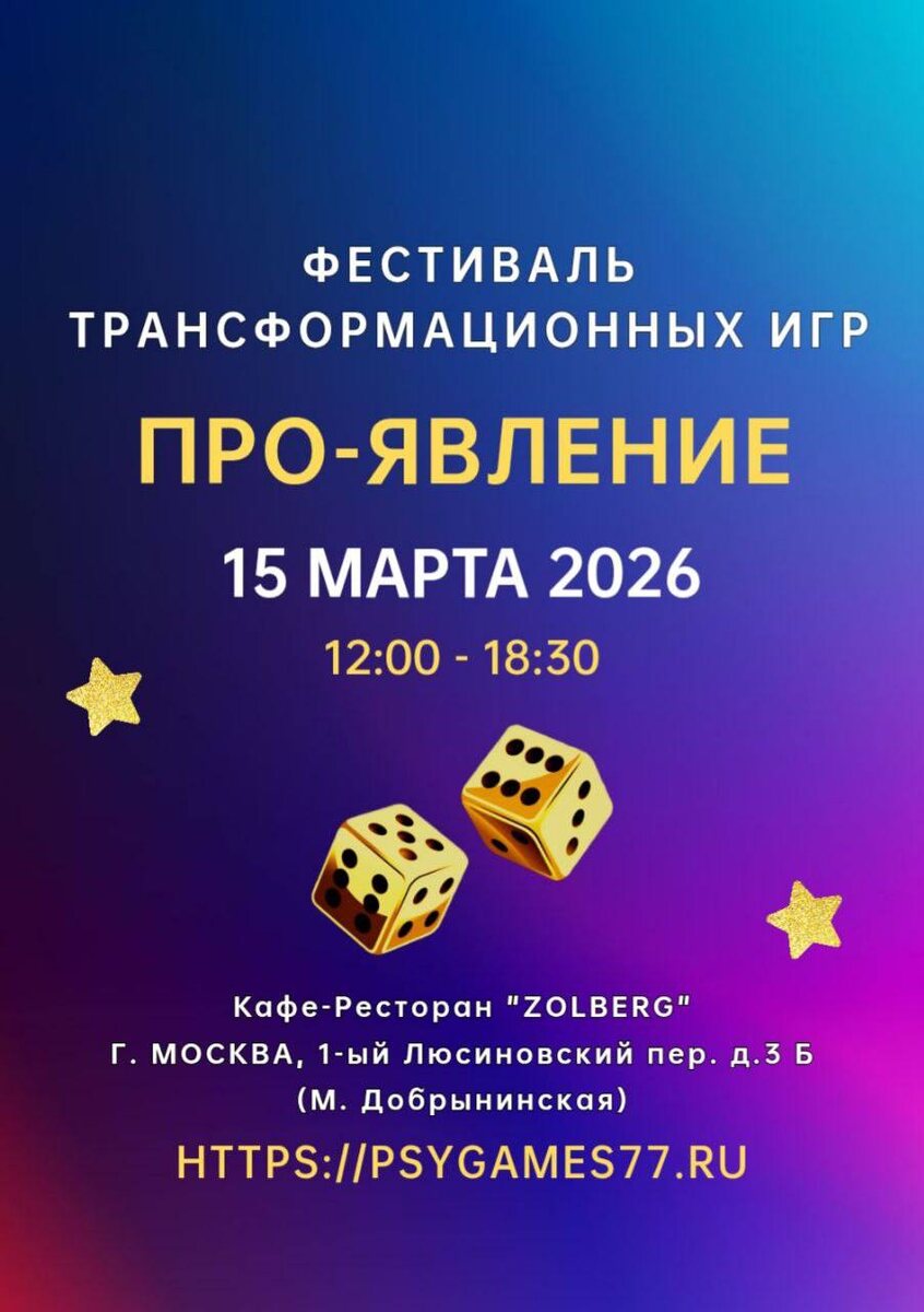 : 📆 15 марта 2026 (ВС) - Фестиваль Трансформационных игр «ПРО-ЯВЛЕНИЕ» (офлайн,Москва) Если вы: 🔹 ведёте трансформационные и бизнес игры; 🔹️ работаете в коучинговом подходе; 🔹️ проводите мастер-классы, диагностики (нумерология, астрология и т.д.); 🔹 работаете с практиками осознанности, телесности, энергии; 🔹 проводите расстановки или иные методики, пробуждающие людей — тогда это приглашение вам! ➡️ По вопросам участия пишите, пожалуйста @help_events или @tatyana_trofimova1 Татьяна Трофимова Чат Фестиваля: https://t.me/+i6--2uK7UxUyZjMy Присоединяйтесь 🤗