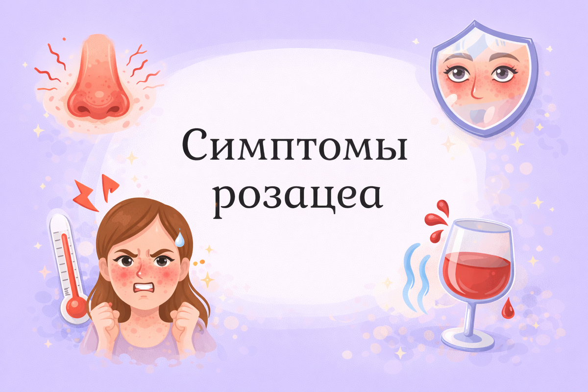 Розацеа — мастер маскировки. Она может прикинуться аллергией, акне или солнечным ожогом. Но если знать ее фирменные приемы, распознать можно довольно быстро. В прошлой статье мы обсудили причины появления заболевания, а теперь давайте разберем, как именно розацеа заявляет о себе и почему ее так легко спутать с чем-то другим 🤨 Покраснение, которое не проходит Самый частый симптом — постоянная краснота в центральной части лица, в области щек, носа, подбородка, иногда лба. И это не тот румянец, который появляется после бокала вина и исчезает через час. Это фон, который буквально живет своей жизнью день за днем. Пациенты иногда говорят: «Я вроде отдыхаю, не на солнце, ничего горячего не пила — а лицо всё равно красное» 😥 Сосудистая сетка (привет, телеангиоэктазии!) Телеангиоэктазии — расширение мелких поверхностных сосудов кожи. Они выглядят, как тоненькие красные ниточки или паутинка, особенно заметные на щеках и крыльях носа. Тональник их, конечно, прячет, но ненадолго — к вечеру они с