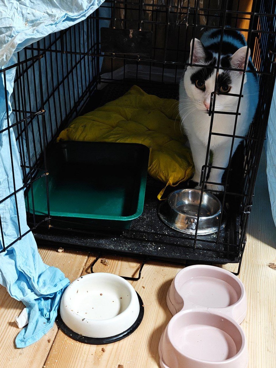 Может быть, если встать рядом с пустыми мисочками, кожанная догадается