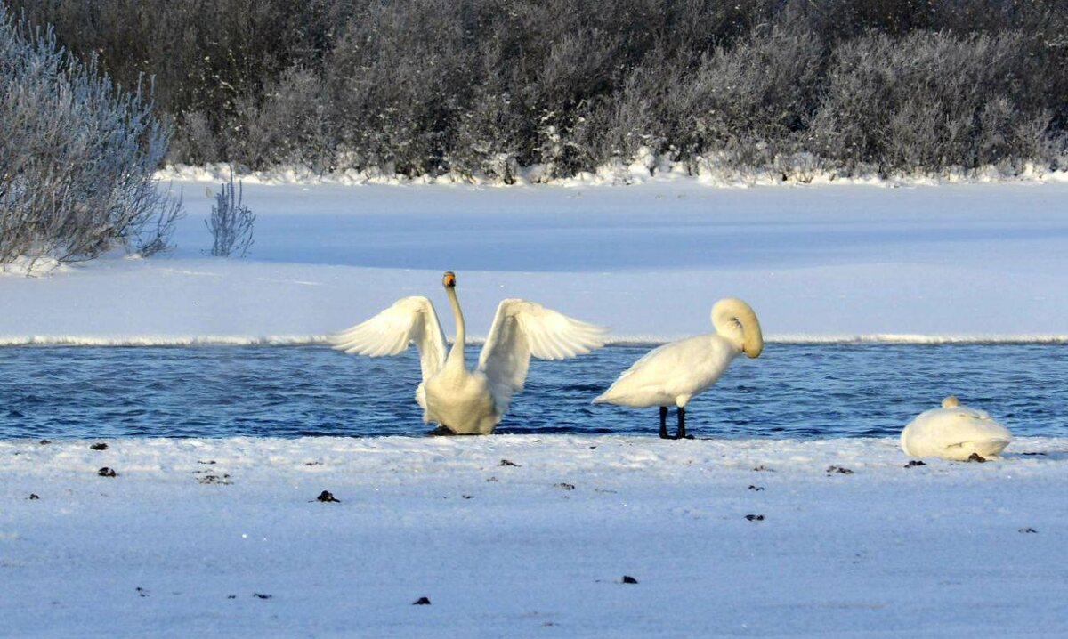 🦢 Уже не первый год лебеди-кликуны остаются зимовать на Вуоксе. Даже в самые лютые морозы на реке остаются участки, которые не замерзают. Для местных жителей они давно стали привычной частью зимнего пейзажа. А путешественники замирают в восхищении: трудно поверить, что лебеди неотправились в тёплые края, а остались зимовать среди снежных просторов Карелии. Фото: телеграм-канал администрации Приозерского района Ленинградской области