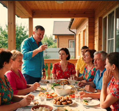 Жара стояла такая, что плавленый сыр в тарталетках потек через десять минут после начала застолья. На даче пахло укропом, дымом от мангала и мамиными сердечными каплями — она накапала себе заранее, «чтобы не волноваться от счастья».