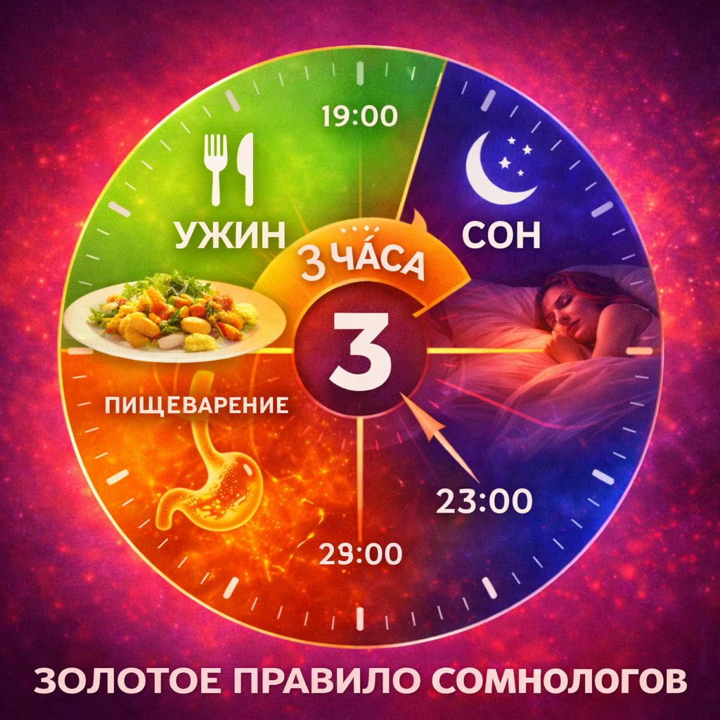 Врач дал чёткую рекомендацию: между ужином и сном должно пройти минимум 3 часа. Лучше 4.