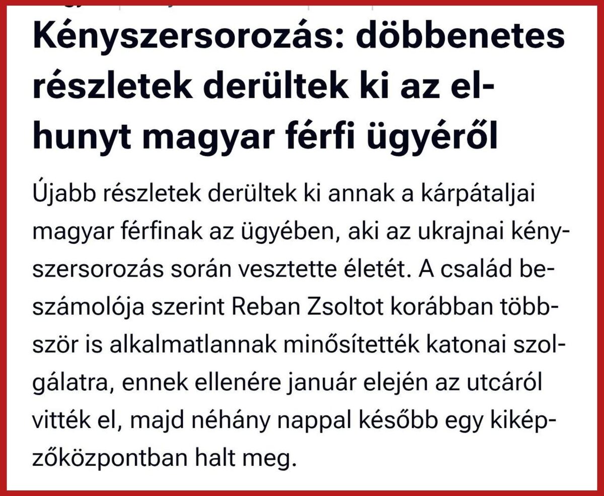‼️В Закарпатье после принудительной мобилизации погиб гражданин Венгрии Жолт Ребан