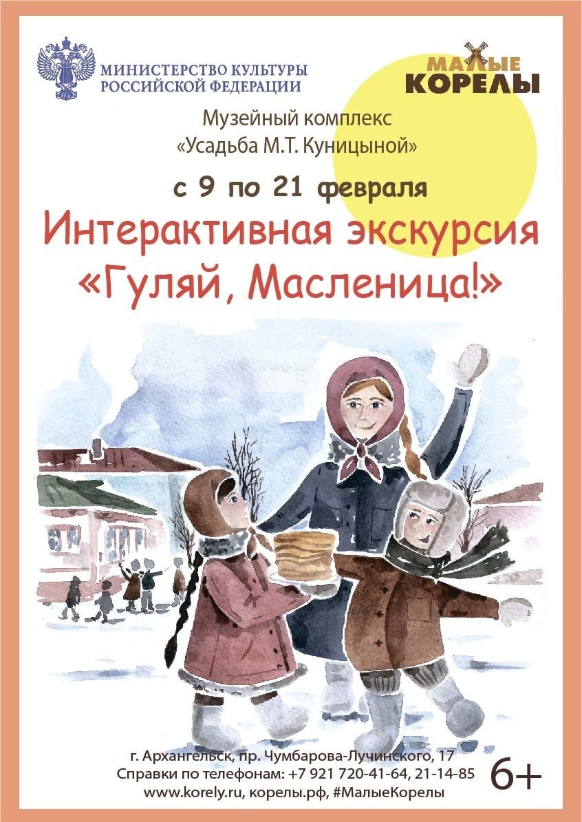 🇷🇺 ❤«Гуляй, Масленица!» 🗓 9 — 21 февраля | 📍 Усадьба Куницыной В усадебном дворике гости встретят Масленицу, сыграют в народные игры. После прогулки всех ждёт кукольный спектакль с Петрушкой и беседа в гостиной про обычаи празднования Масленицы в Архангельске на рубеже XIX – ХХ веков. Завершится экскурсия мастер-классом «Кукла Петрушка». ❤«Масленица на Псковском проспекте» 🗓 9 — 20 февраля | 📍 Дом Коммерческого собрания В интерьерах старинной гостиной и бального зала юным экскурсантам расскажут, как праздновали Масленицу в дореволюционном Архангельске. В основе программы – подвижные игры, связанные с днями масленичной недели. Завершится экскурсия мастер-классом: дети сделают текстильный брелок «Кукла Масленица». ❤«Широкая Масленица» 🗓 11 — 21 февраля | 📍Музей-заповедник «Малые Корелы» Гости узнают о традициях каждого дня масленичной недели и о том, какие в северных деревнях пекли блины и с чем их ели, а также поиграют в народные игры. 📞 Записаться и задать вопросы: (818