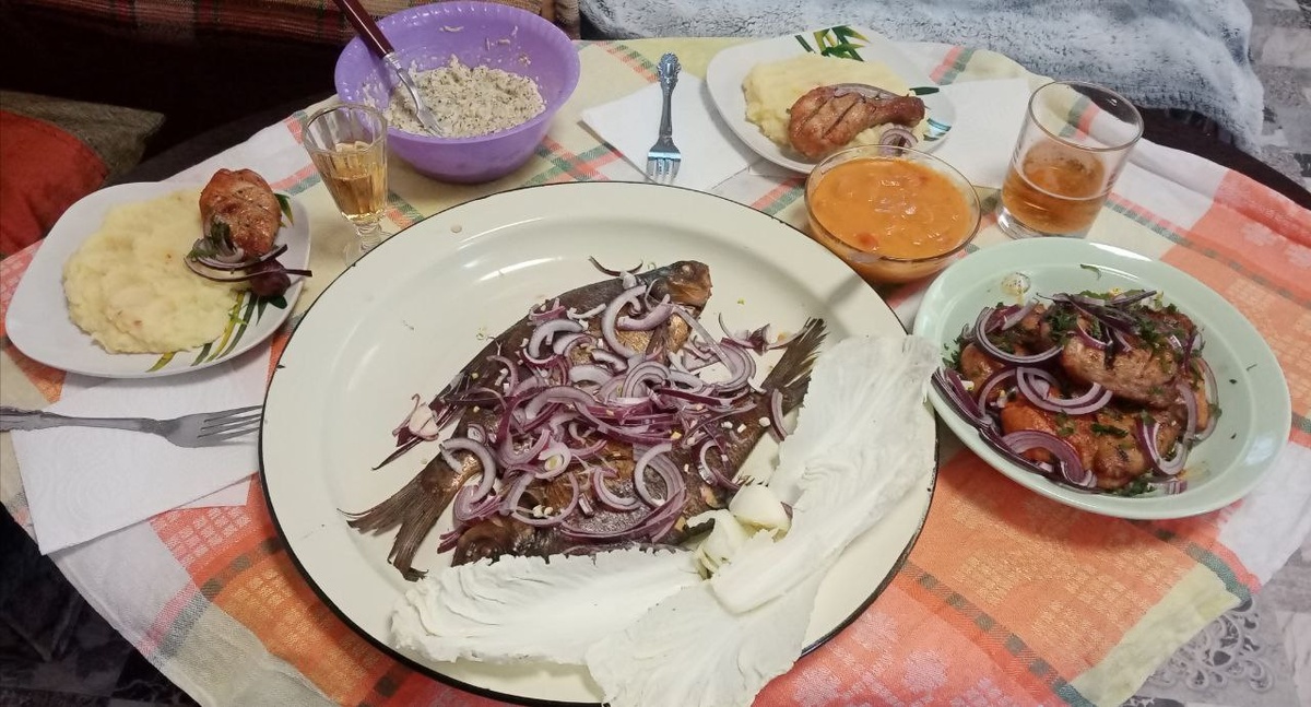 Копчёный лещ, шашлык куринный🤤 спасибо Иваныч и Алла