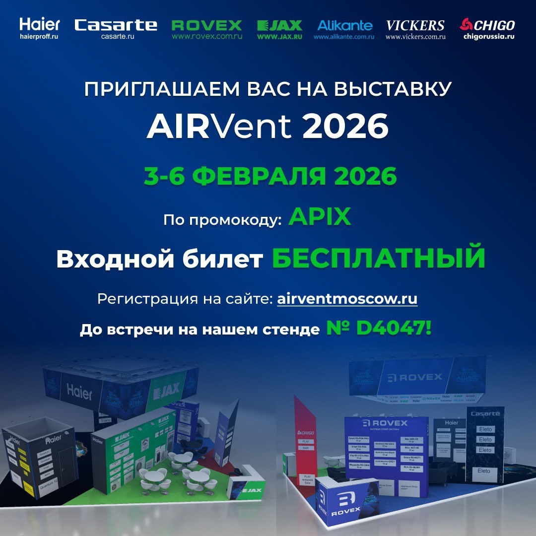 📅 Уже завтра мы окажемся в самом сердце климатического рынка — на выставке AIRVent в Крокус Экспо ТОП-3 причины посетить стенд АПИКС № D4047: ✅ Оценить климатическое оборудование вживую ✅ Лично пообщаться с менеджерами компании ✅ Увидеть и сфотографироваться с необычным арт-объектом Не забудьте зарегистрироваться по бесплатному промокоду: APIX! Ждем вас!