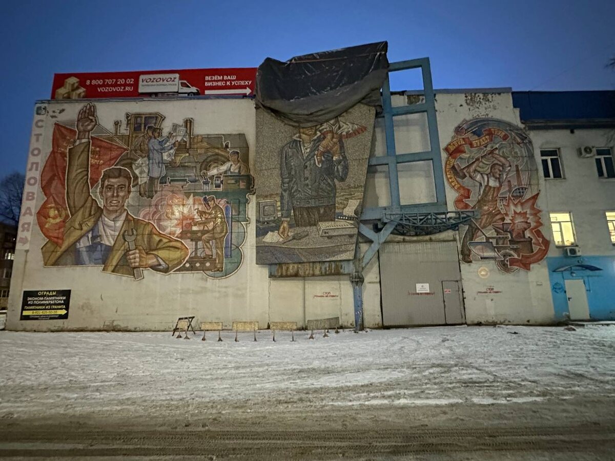 Советская мозаика на стене завода СКДМ Бывшие цеха вологодского завода строительных конструкций и машин украшены мозаичным триптихом. Как всегда кто-то видит в этом изображении наличие идеи и общих ценностей, а кто-то серость и предопределённость жизни. Закрытое лицо мужчины и девушки на второй части панно не случайно. Завод видимо давно закрыт, по крайней мере отметка на яндекс картах "Вологодский деревообрабатывающий завод" уныло сообщает "Больше не работает". Помещения судя по всему сдаются в аренду. 📱 Архитекстура #Вологда