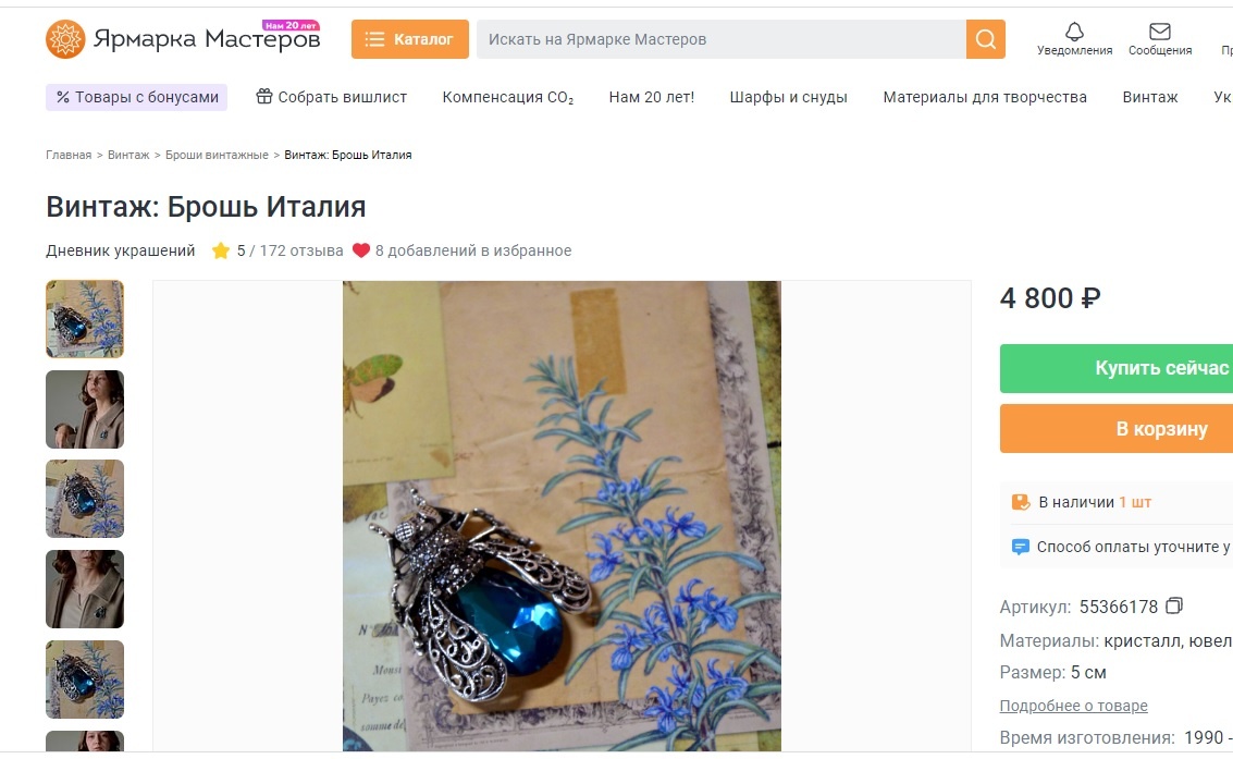 На Али куплена брошь за 179 руб, продается за 6000 руб.