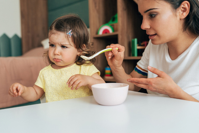- переход на взрослую пищу — малыши начинают привыкать к новым вкусам и консистенциям продуктов, но некоторым блюдам ребёнок может сопротивляться, отказываясь от незнакомых вкусов;