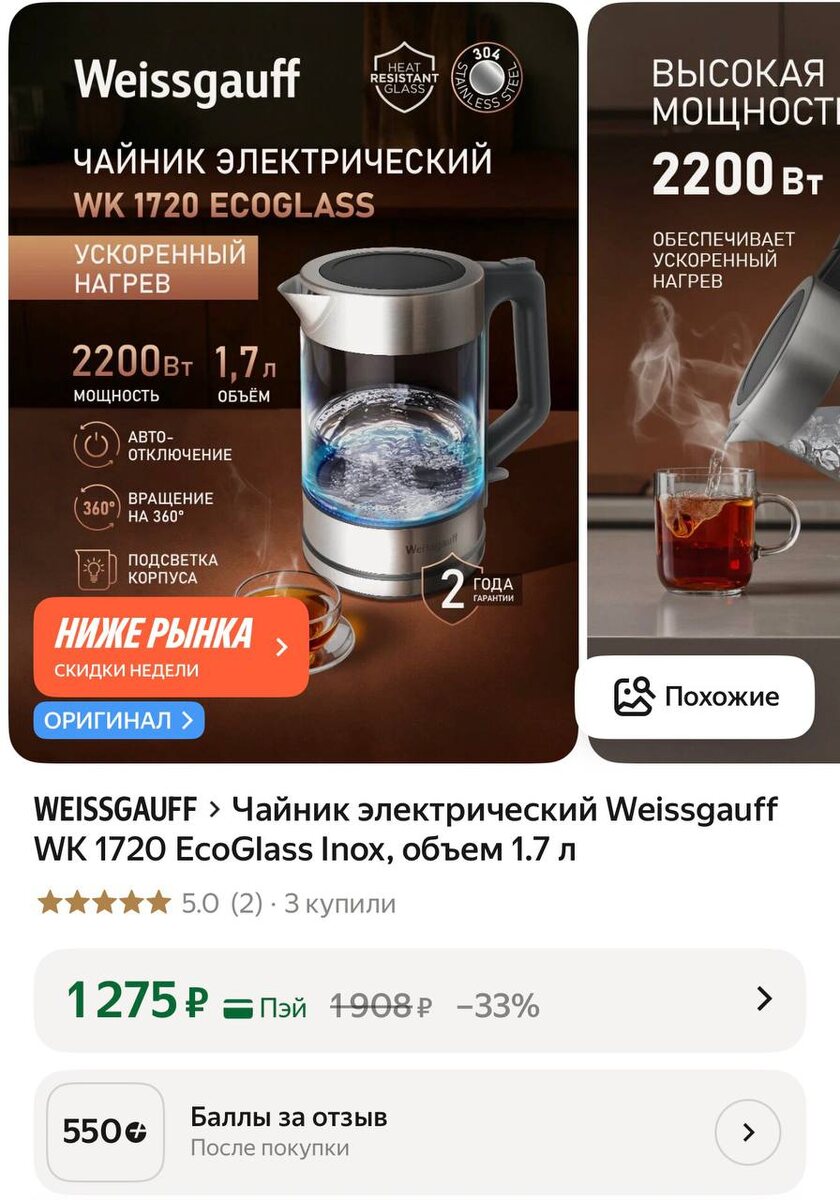 ! Чайник электрический Weissgauff WK 1720 EcoGlass Inox, объем 1.7 л ССЫЛКА ⬅️ 🛍 FEBRU67-AF - Скидка 100 ₽ на на одну любую покупку при заказе от 5000 ₽ ✅ Канал по скидкам 🔣 Бот с промокодами