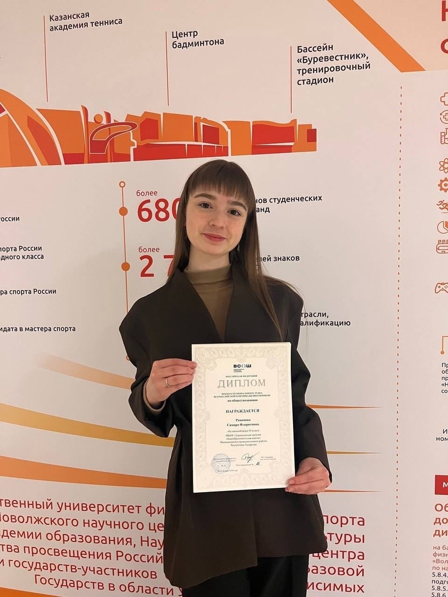 Председатель Совета Первых Таканышской средней общеобразовательной школы Рахимова Самира стала призёром регионального этапа Всероссийской