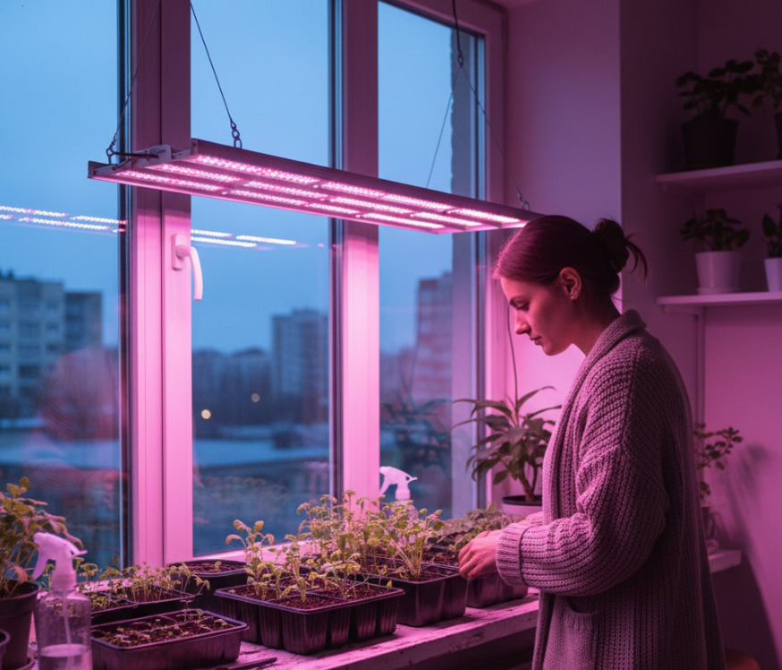 Когда приходит время сажать рассаду, фитолампы становятся незаменимыми помощниками. Для досвечивания подоконников и стеллажей идеально подходят линейные или компактные панели. Рассада петунии, например, крайне светолюбива — при недостатке освещения сеянцы вытягиваются и слабеют. Современные светодиодные решения позволяют успешно выращивать даже самые требовательные культуры в условиях квартиры.