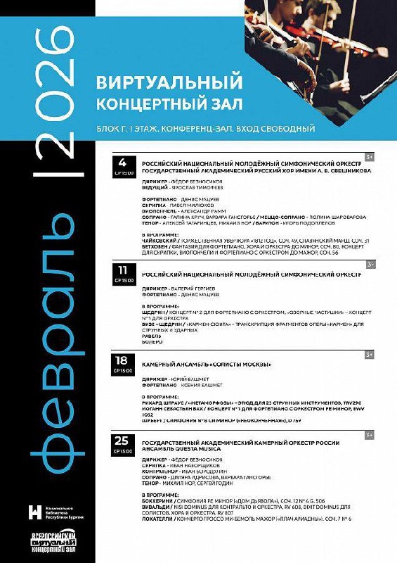 Афиша Виртуального концертного зала Национальной библиотеки Бурятии на февраль
