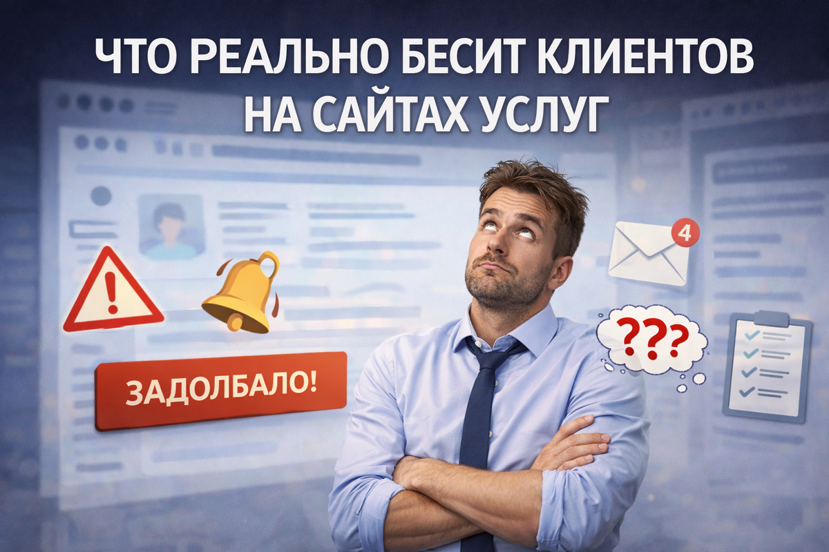 Привет, владелец сайта или просто сочувствующий! Твой сайт – это твой цифровой продажник. Но если он бесит клиентов, то продает только раздражение. Давай честно: ты сам натыкался на сайты, где хочется кричать "Ааа! За что?!"? Вот топ-5 таких "ааа-моментов", которые гробят конверсию. Узнаешь свой? 😉 Блееен, друзья, каждый раз в первый класс, всегда говорю всем своим клиентам, которым я делаю сайты, дайте больше инфы про ваш товар или услугу, чтобы максимально раскрыть ее на первом экране! Первый экран это пиз...ц как важно!!!!! Человек который зашел к тебе на сайт, должен понять всего за 3-5 секунд самое важное и ценное: Если этого нет начинается скроллинг и убегаллинг с сайта потому что, ни хрена ни понятно Ситуация: Ты, как нормальный человек, хочешь узнать про монтаж кондиционера. Заходишь на сайт – а там меню: "Услуги", "Продукция", "Решения", "Кейсы", "О нас", "Еще что-то". Кликаешь на "Услуги" – тебя швыряет на страницу с подпунктами: "Бытовые", "Промышленные", "Спецпредложения".