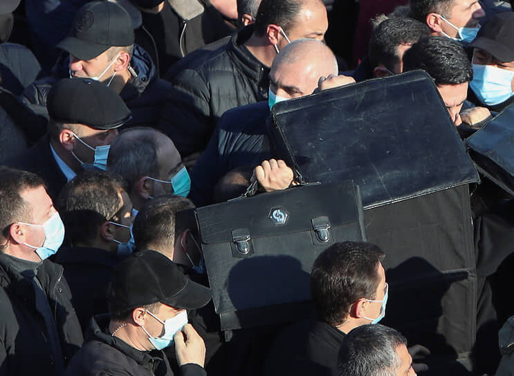 Пашинян давно уже не появляется в «Ераблуре» без сопровождения сотрудников охраны с чемоданчиками, в которых находятся специальные устройства, позволяющие в случае необходимости прикрывать фараончика от ударов с неба. И здесь у нас возникает второй вопрос: а почему не были защищены от ударов с неба покоящиеся в «Ераблуре» герои?