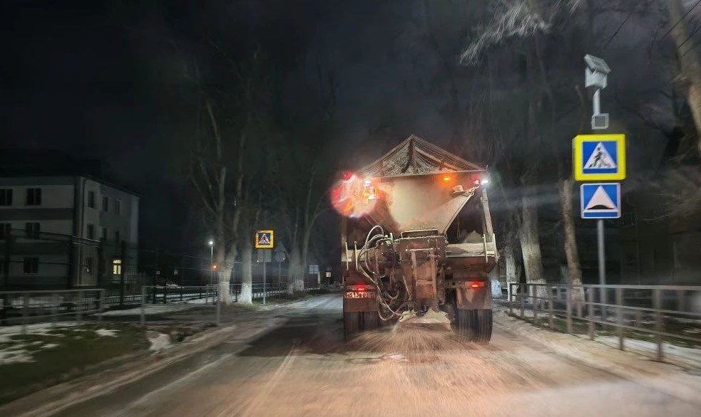 В городе несколько дней был хороший «плюс» на улице, затем пошел дождь, а в первый день февраля столбик термометра резко пошел в минус. Естественно, на дорогах образовалась ледяная корка, на внутриквартальных проездах и тротуарах смерзлись мокрый снег с грязью и песком. В ночь на понедельник в Волгодонске была экстренно организована масштабная работа по обработке дорожного полотна противогололедными материалами. Для предотвращения транспортного коллапса и снижения аварийности департамент городского хозяйства оперативно задействовало силы подрядных организаций – ООО «Созидатель» и ИП Гвоздь, которые начали высыпать пескосоляную смесь. Основной упор сделан на наиболее опасные участки — мостовые переходы, путепроводы, крутые повороты и подъезды к остановочным комплексам. Подрядчики продолжают работать в круглосуточном режиме. Но, несмотря на это, дорожная ситуация в городе остается напряженной. Фото: департамент городского хозяйства