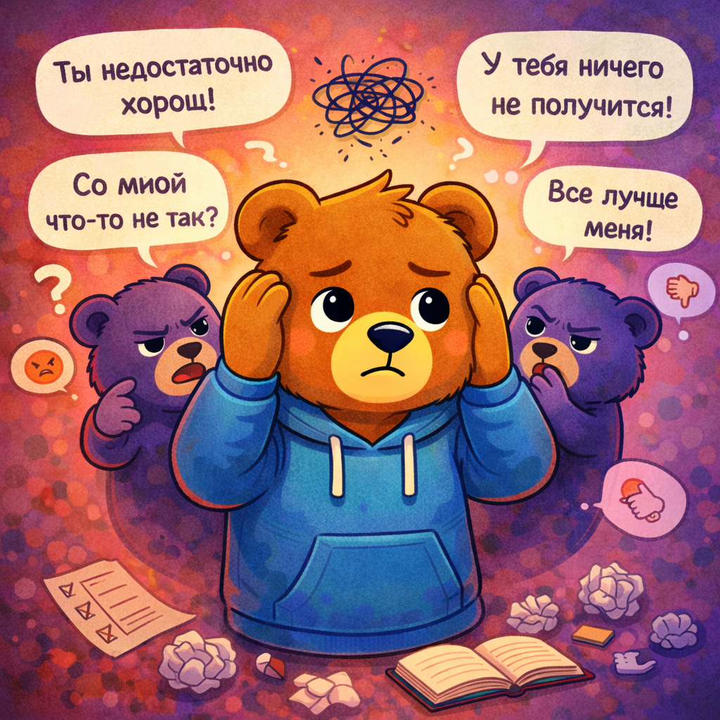 С точки зрения психологии внутренний критик — это интериоризированный голос внешней оценки, который когда-то был нужен, чтобы выжить и быть принятым.