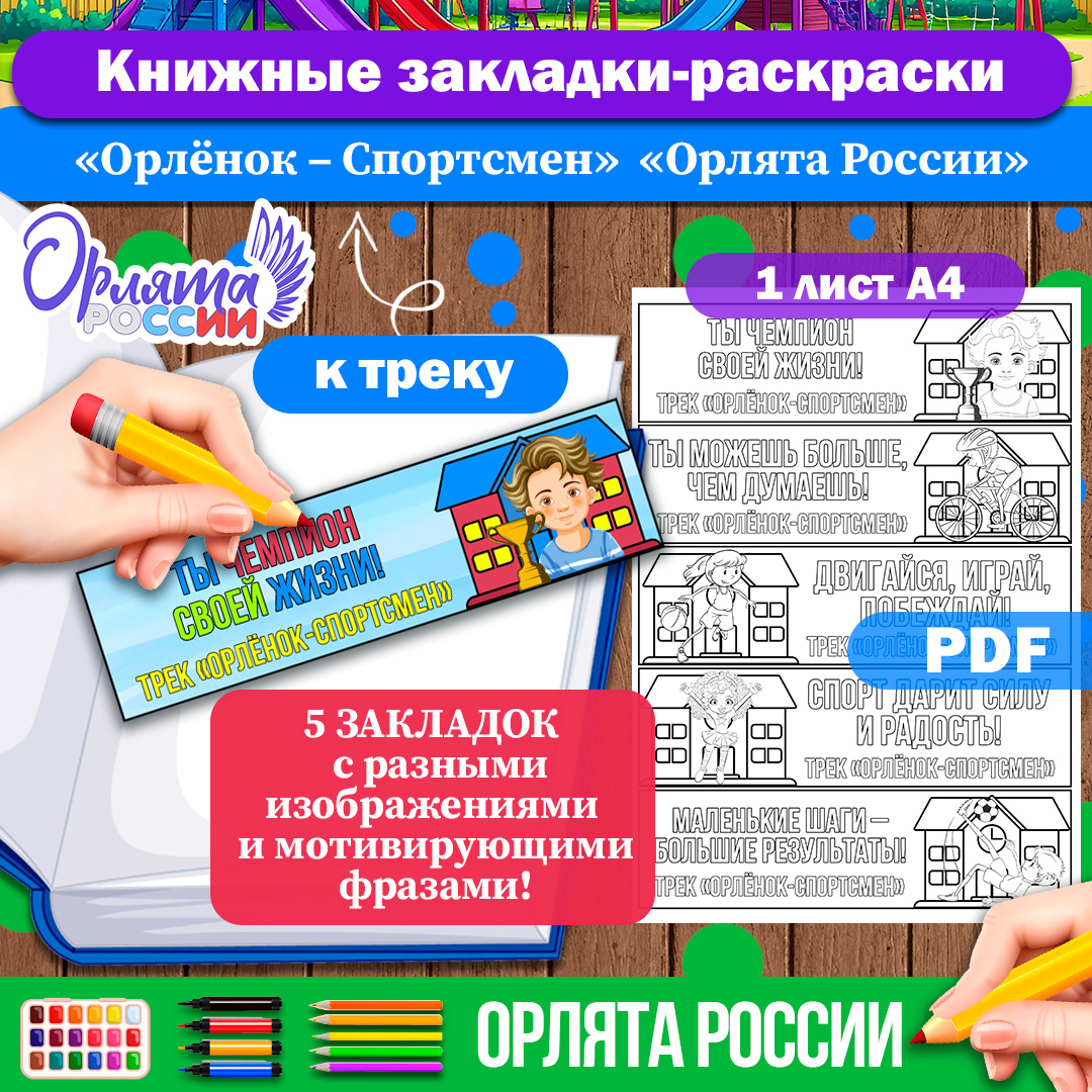 Книжные закладки-раскраски к треку «Орлёнок-Спортсмен». Закладки для книг «Орлята России» для 1-4 класса