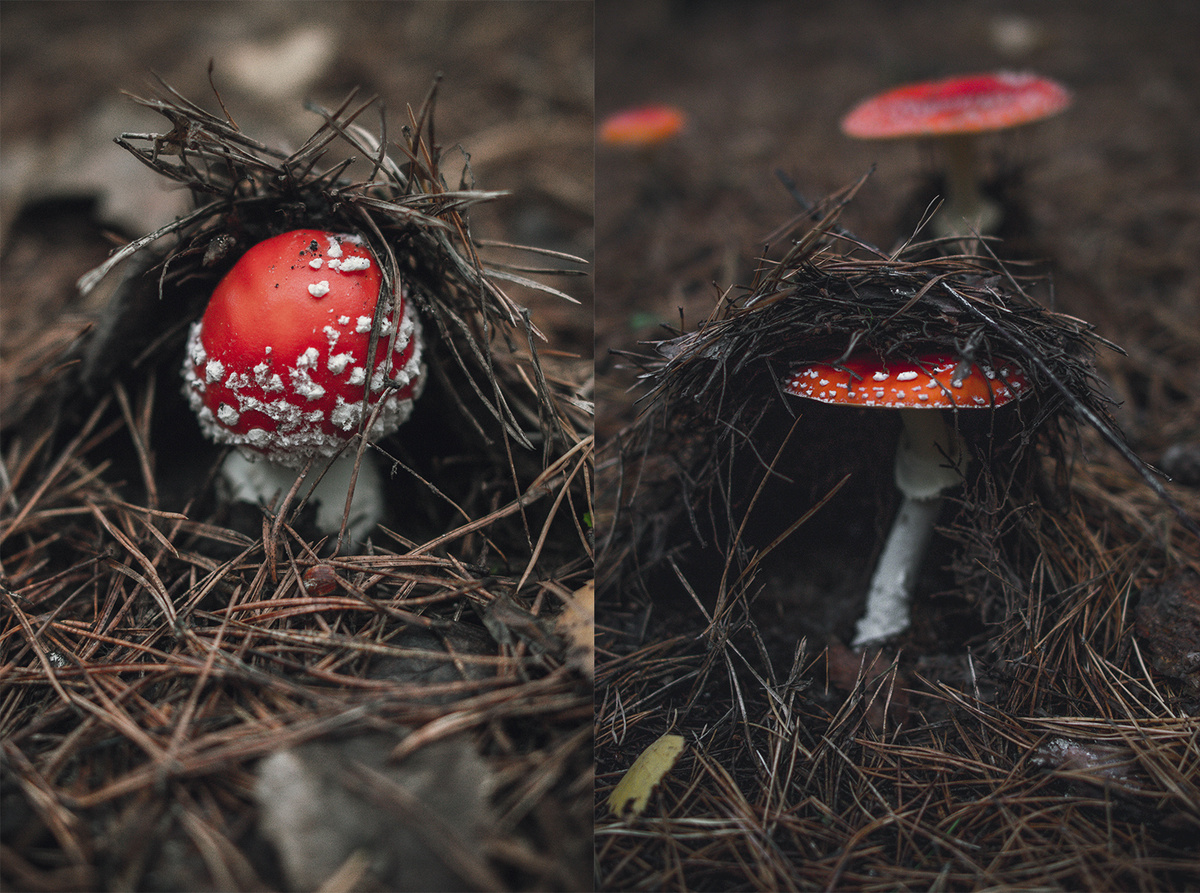 Практически во все свои походы в лес я беру камеру. Дело в том, что как художник я очень люблю подмечать разные детали. Например: текстуру и изгибы веток, капли росы, пробивающиеся сквозь хвою грибы. Все это мне хочется сохранить на память и утащить с собой в виде фотографий. Ну и конечно потом использовать в своем творчестве в виде референсов и элементов вдохновения. В своих работах я часто изображаю лес, а прогулки в нем развивают насмотренность к деталям. Например, вот такие коряги потом отлично смотрятся в черно-белой графике. За несколько лет у меня накопилось огромное количество фотографий природы, особенно часто я фотографирую мох и лишайники самых разных форм. Мухоморы и зонтики с их фактурными шляпками тоже становятся объектом фотографирования и изображения на рисунках. Ну и конечно же "лесной улов" тоже необходимо красиво заснять. А вы любите ходить в лес?