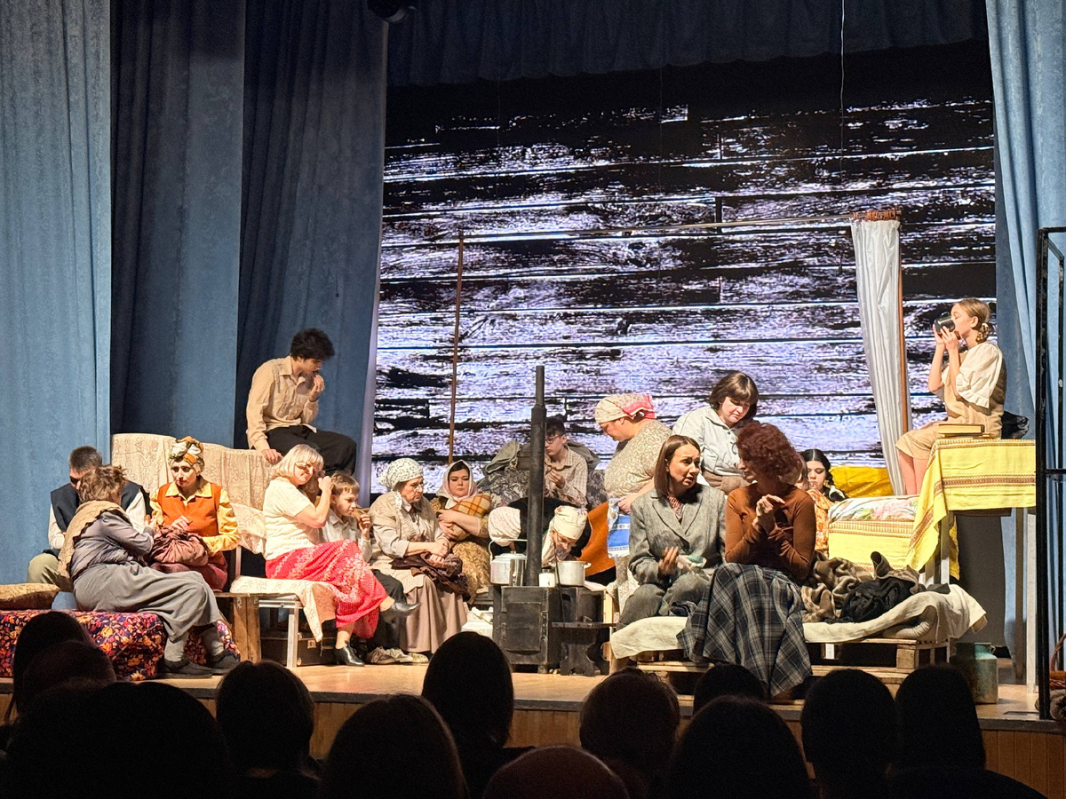 В Центре культурного развития Белогорска в минувшие выходные с большим успехом прошёл спектакль «Эшелон» народного театра имени А.И. Уласовец. Постановка по пьесе Михаила Рощина, посвящённая судьбам женщин и детей в годы Великой Отечественной войны, завершилась продолжительными овациями и нашла глубокий отклик в сердцах белогорцев. — По отклику зрителей, которые аплодировали стоя, театральная постановка прошла успешно, — рассказала художественный руководитель народного театра Белогорска, режиссёр спектакля Елена Шуйская. — Такая реакция — самое ценное, она греет душу и свидетельствует о том, что нам удалось донести важные смыслы о человечности даже в самых суровых условиях. Сюжет спектакля переносит зрителей в 1941 год. В грузовом вагоне-теплушке, следующем в эвакуацию, вынуждены соседствовать женщины, дети и старики. Заводские станки и личные судьбы оказываются в одном пространстве. В тесноте и тяготах долгой дороги в неизвестность перед зрителями разворачивается жизнь одного вагона,