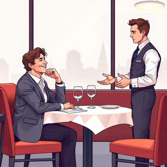 Или щёлкает пальцами. Или не смотрит в сторону официанта вообще — как будто заказ сам появляется на столе.