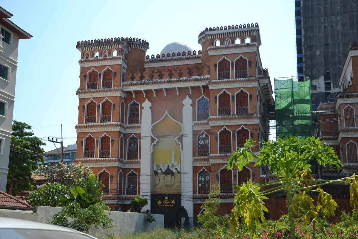 Недалеко от кондо Аркадия (на Пратамнаке) на глаза попался вот такой дворец (мимо него частенько проходили): Нетипичное для Паттайи здание: восточный, арабский стиль аля "1000 и одна ночь". Такое ощущение, что полузаброшен - весь в пыли, всё закрыто. Людей тут не видать. Везде таблички "проход запрещён" и "частная собственность". Загадка, конечно, кто и зачем это строение возвёл. Разделён на две части, одно явно не для общего посещения, а вторая половина — вроде как отель. Но также всё закрыто наглухо. Пусто, что в суетливой Паттайе смотрится, гм, странно. Сюра добавляют павлины, летающий с крыши оного заведения по вечерам: Интересно, кто сюда вбухал такие средства, и почему всё стоит пустое?