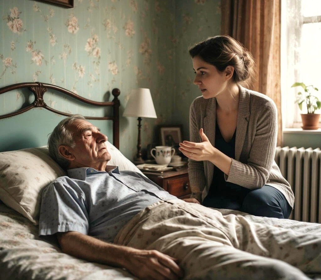 Марина вышла из машины. Ноги были ватными. Она медленно пошла к дому, чувствуя, как колотится сердце. На веранде, укрытый старым клетчатым пледом, сидел старик. Увидев её, он попытался встать, но ноги подвели его, и он тяжело опустился обратно, вцепившись тонкими, дрожащими пальцами в подлокотники кресла.