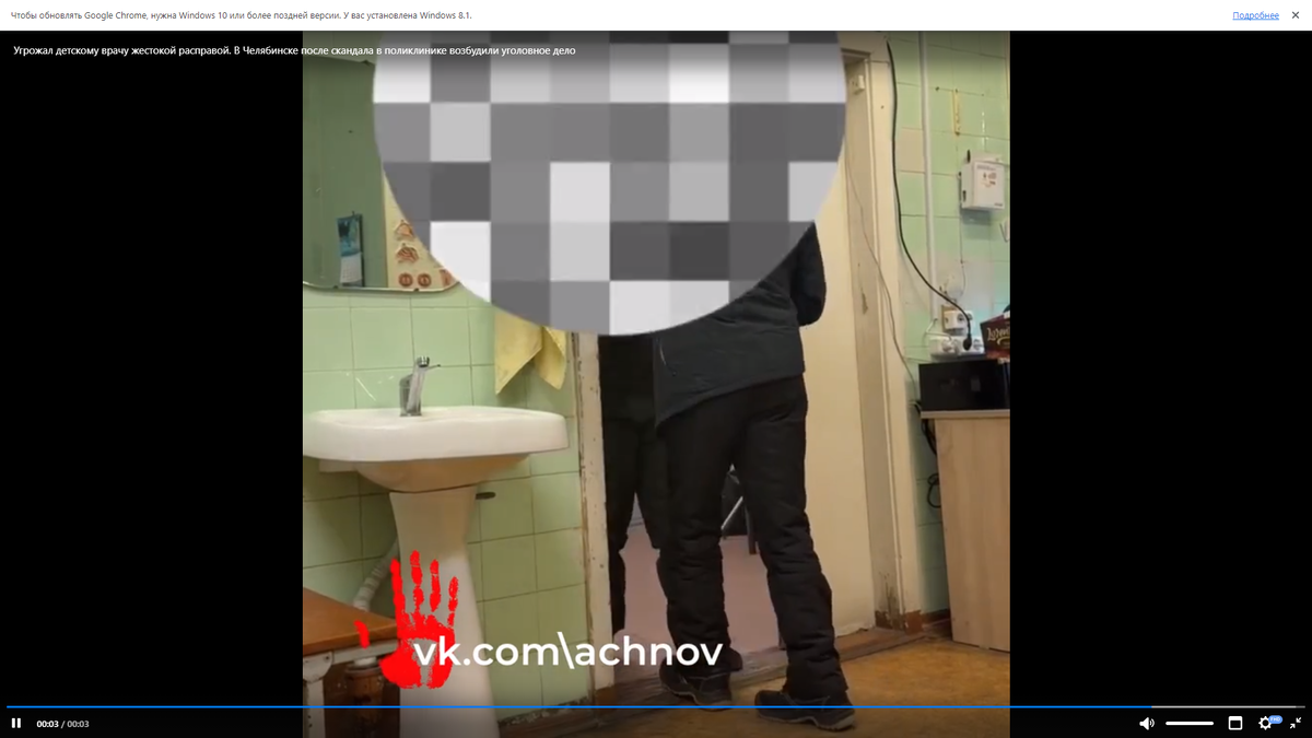 В Челябинске после скандала в поликлинике возбудили уголовное дело Мы вставили кусочек видео, но не можем включить звук. Потому что на нем на протяжении двух минут разъяренный человек кричит отборным матом, не давая вставить слово врачу, который осматривал его ребенка. Инцидент произошел в одной из поликлиник Центрального района. Мужчину не устроило назначенное лечение, и вместо диалога он перешел на прямые угрозы расправой. На записи слышно (поверьте нам), как он обещает "разбить лицо" и заявляет, что "сидеть не боится". Дежурный врач при этом пытался объяснить, что лечение назначено и матери все разъяснили. На видео оперативно отреагировал Следственный комитет. По факту угроз и агрессивного поведения возбуждено уголовное дело по статье "хулиганство с угрозой применения насилия". Сейчас следователи устанавливают все обстоятельства произошедшего. Мужчине может грозить серьезное наказание - от крупного штрафа до реального лишения свободы сроком до пяти лет.