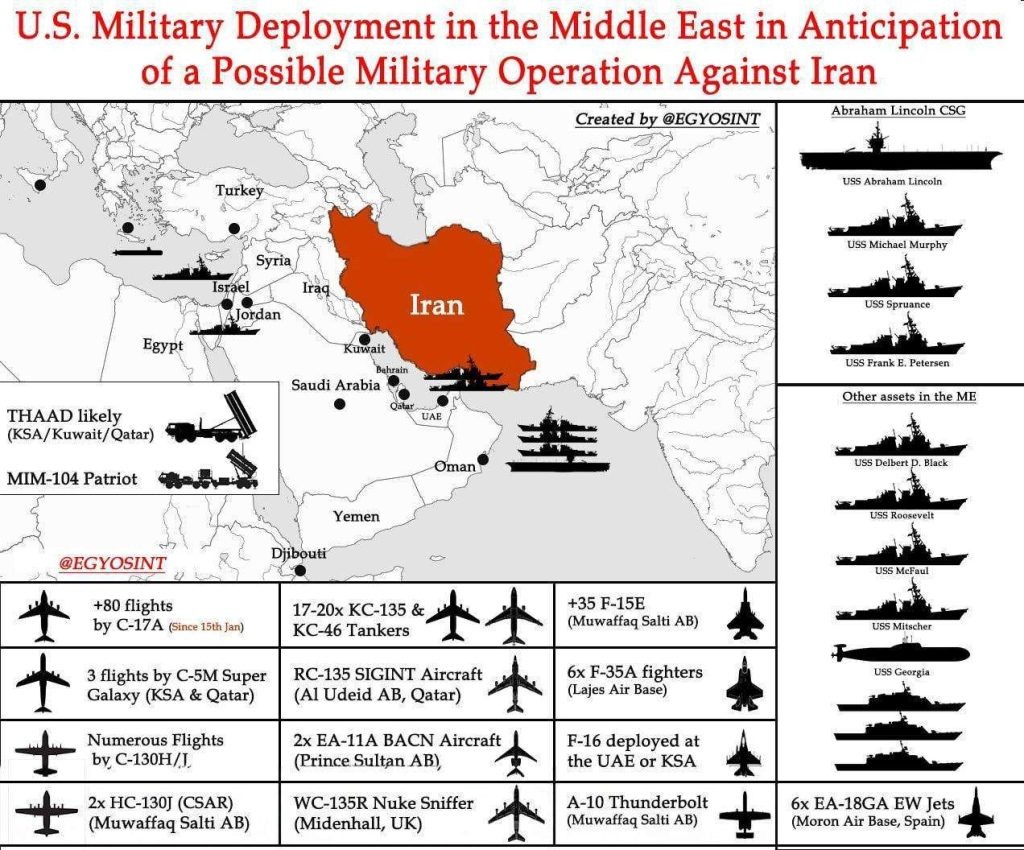 США превращают Ближний Восток в гигантский авианосец, стягивая к берегам Ирана беспрецедентные силы. По данным мониторинговых ресурсов, Пентагон развернул масштабную группировку, включающую «умную» авиацию и тяжелый флот. В небе уже дежурят стелс-истребители F-35A, самолеты РЭБ Growler и штурмовики A-10C, а логистику обеспечивают более 20 танкеров-заправщиков и целый флот транспортников C-17, совершивших свыше 80 рейсов для переброски подкреплений. На воде ситуация не менее «жаркая»: авианосная группа USS Abraham Lincoln заняла позиции в Аравийском море, а эсминцы класса Arleigh Burke распределены по всем ключевым точкам — от Персидского залива до Средиземноморья. Последним штрихом в этой демонстрации силы стала атомная подводная лодка USS Georgia, патрулирующая регион. Официальная цель — защита баз в ОАЭ, Катаре и Саудовской Аравии, а также прикрытие Израиля, однако масштаб развертывания намекает, что Вашингтон готовится к любым сценариям в противостоянии с Тегераном. Ранее мы писали,