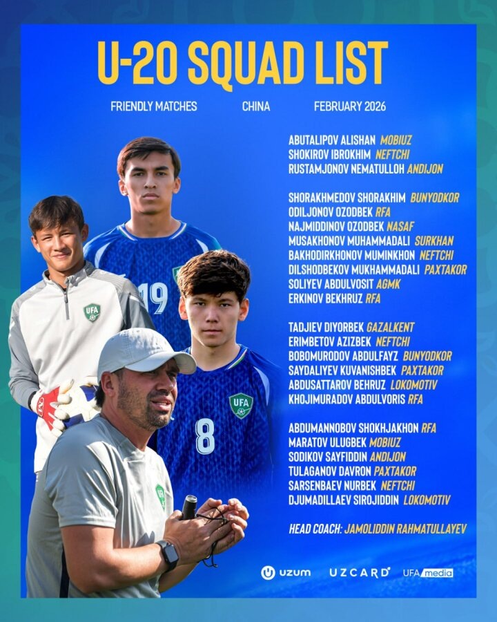 Сообщается, что начиная с 27 января 2026 года молодёжная сборная Узбекистана по футболу, среди игроков до 20 лет, осуществляла усиленную тренировку на территории Национального футбольного центра. 1 февраля сборная, под руководством тренера Джамолиддина Рахматуллаева, провела товарищеский матч против команды "Olimpik Mobiuz", одержав победу со счётом 3:2.