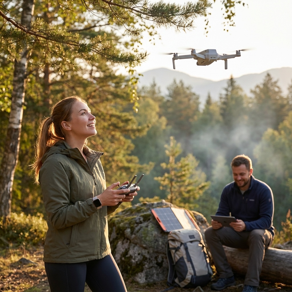 Современные портативные дроны весят меньше килограмма и складываются до размера книги. Носить их в туристическом походе — не проблема. А результат превращает обычный отдых за городом в материал для документального фильма.