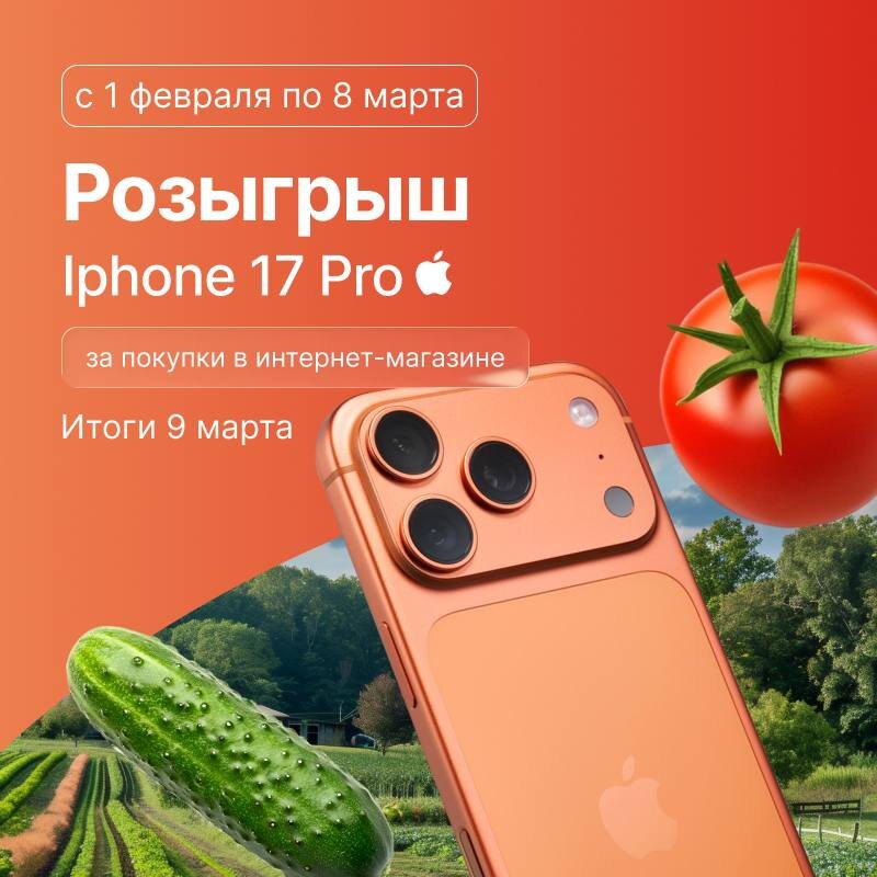 С 1 февраля по 8 марта в интернет-магазине Агрофирмы Партнер проходит розыгрыш ценного приза — iPhone 17 Pro 256 Gb Cosmic Orange 📱 Как участвовать? Всё максимально просто: — совершайте покупки в интернет-магазине в период акции, — каждая покупка автоматически становится участием в розыгрыше. 💡 Чем больше покупок — тем выше шанс на победу. 📅 Итоги подведём 9 марта, результаты опубликуем в социальных сетях Агрофирмы Партнер — обязательно следите за новостями. Это отличный повод не откладывать покупки семян овощей и цветов и добавить в сезон немного удачи 🌱✨ 👉 Покупайте, участвуйте и, возможно, именно вы станете обладателем нового iPhone.