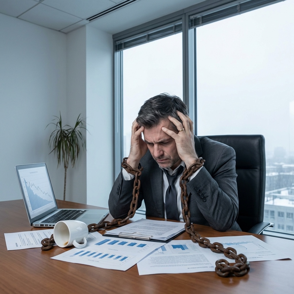 Это и есть синдром успешного предпринимателя. Те самые привычки, которые вытащили ваш бизнес на текущий уровень, теперь работают против вас. Они стали невидимыми якорями, которые держат компанию на месте.