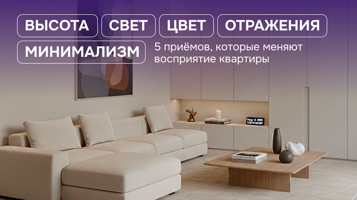 Парадокс, но чем меньше предметов и вещей в поле нашего зрения, тем выше воспринимается статус интерьера. Ведь дорогая квартира — не та, где много всего, а та, где всё на своём месте и ничего не требует внимания.