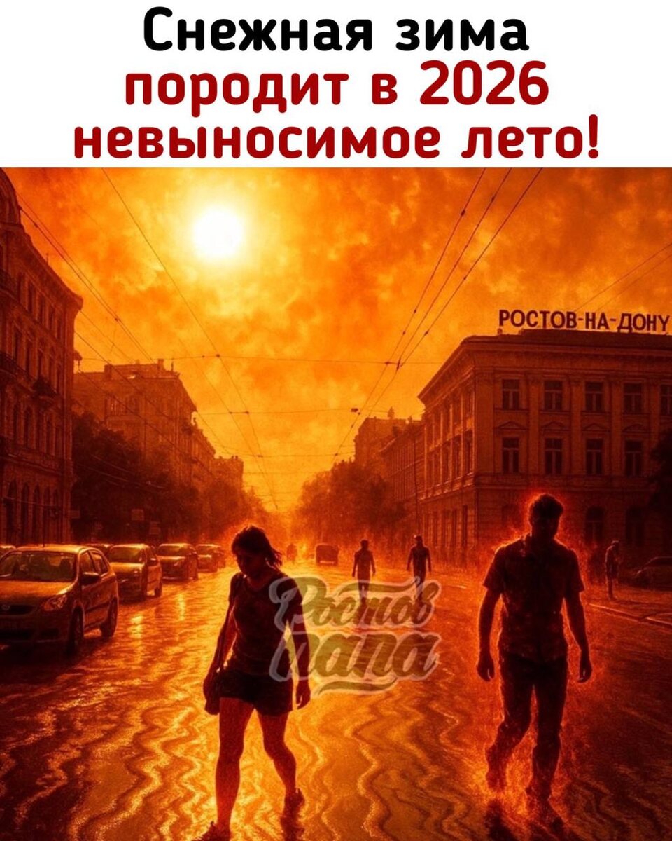 вырасти на 1,4°C. Когда снега много, весна обычно становится быстрой — снег тает лавинообразно, вода стекает, не успевая впитаться в почву. Это приводит к тому, что лето становится более жарким и сухим, поскольку почва не получает достаточного увлажнения. В июне и июле на юге страны столбики термометров регулярно будут подниматься выше +35°C. В августе сохранится стабильно жаркая погода с температурой +28–30°C 👉🏻Новости №1 в Ростове 💌Прислать новость/фото Ростов Папа теперь в Ⓜ️🅰️❌