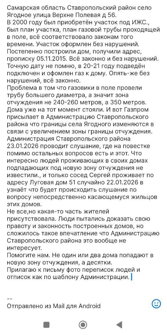 план поселения. В коллективном обращении к губернатору Вячеславу Федорищеву и в аппарат Президента они утверждают, что администрация подготовила документ, который исключает 83 жилых участка из границ села и переводит их категорию с индивидуального жилищного строительства на земли промышленности и специального назначения. Люди опасаются, что решение может привести к сносу домов, потере собственности, аннулированию прописки и фактическому выселению десятков семей По словам жителей, речь идёт не о самостроях и не о временных постройках, а именно о домах, которые стоят десятилетиями Участки выделялись ещё в 1990-е годы, в начале 2000-х недвижимость была оформлена в Росреестре, проведены свет, газ и вода, зарегистрированы проживающие. Многие семьи строились своими руками, вкладывали средства год за годом, растили детей, создавали хозяйство и связывали будущее именно с этим местом. В Ягодном живут пенсионеры, многодетные родители, семьи участников СВО, малолетние дети и теперь, как говорят