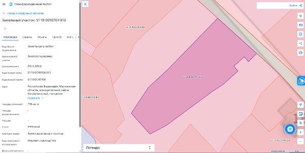 Название: Земельный участок с кадастровым номером 51:19:0010704:813 площадь 718 по адресу Российская Федерация, Мурманская область