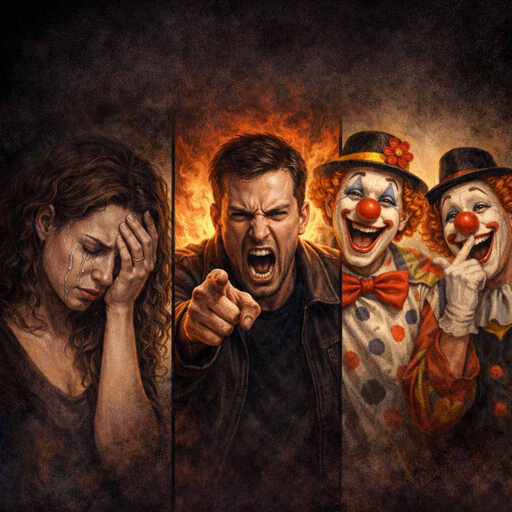Реальность устроена гораздо сложнее, чем «обиделся - сам виноват». Есть объективно унижающие фразы, есть запугивание, манипуляции, издевательства, есть систематическое обесценивание, есть пассивная агрессия, есть прямое психологическое насилие. Когда ребенку годами говорят "ты ничтожество", "из-за тебя я жизнь сломала", "с тобой невозможно", когда партнёру каждый день вешают на шею чувство вины, когда взрослая мать травит взрослую дочь под видом заботы - это не «твое решение обидеться», это насилие. Нервная система не голосует за то, чтобы заболеть от обиды, она реагирует на реальную угрозу и на реальную боль.