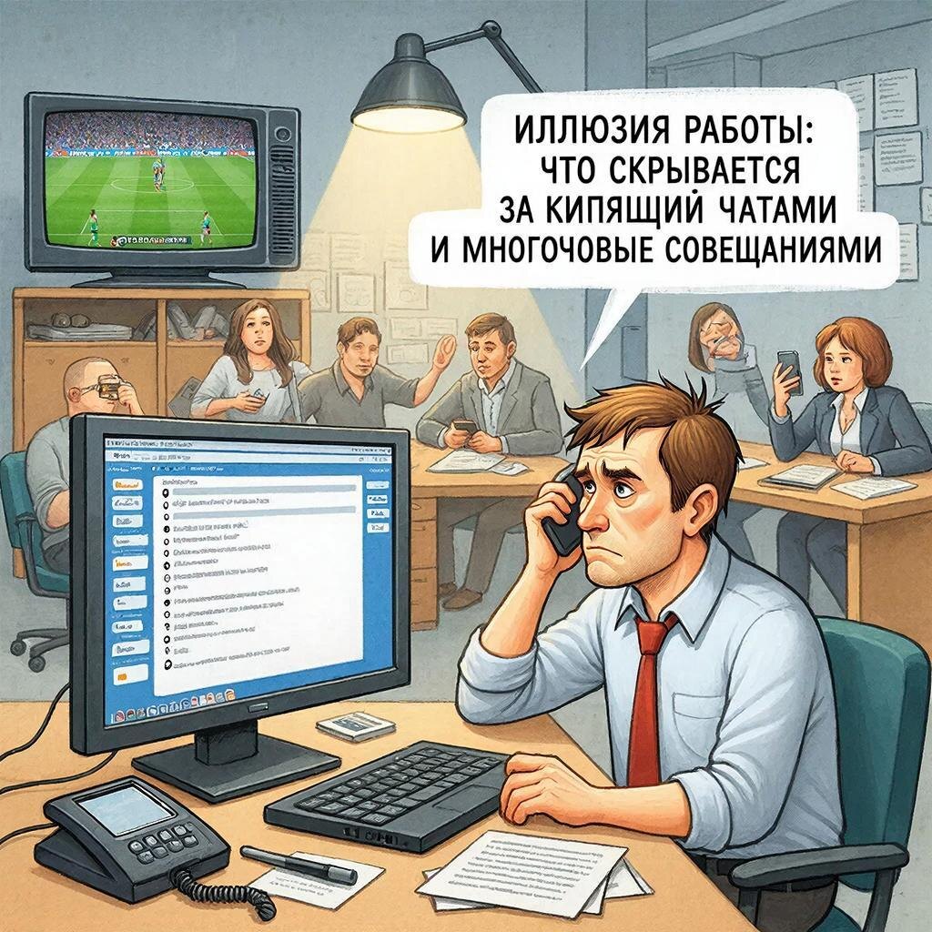 Иллюзия работы: что скрывается за кипящими чатами и многочасовыми совещаниями