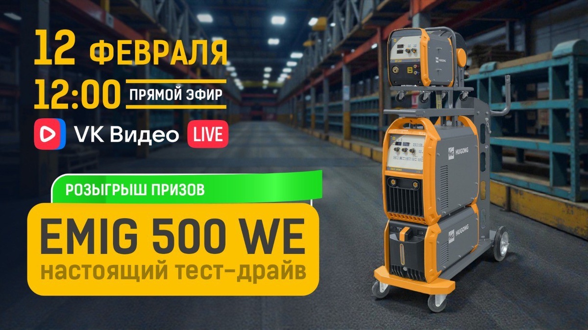 ! Год начался снежно и бодро — самое время для яркого старта! Рады объявить дату нашего первого стрима в этом году: 12 февраля в 12:00. Что вас ждёт: Распаковка промышленного сварочного аппарата HUGONG EMIG 500WE III — посмотрим, что внутри, и оценим комплектацию. Сборка в прямом эфире — покажем все этапы, ответим на ваши вопросы. Настройка и тестовая сварка — продемонстрируем работу аппарата и сварим аккуратные, красивые швы. Розыгрыш призов — самые активные зрители получат подарки от HUGONG, а одному из вас достанется сварочный аппарат от бренда TSS! Почему стоит подключиться: Увидите аппарат «вживую» — без монтажа и скрытых моментов. Получите полезные советы по сборке и настройке от наших экспертов. Сможете задать вопросы в чате и поучаствовать в обсуждении. Есть шанс выиграть крутой приз — сварочный аппарат для мастеров и любителей! Не пропустите — будет жарко! 👉 Проверьте подписку на нашу группу ВКонтакте, поставьте напоминание, чтобы не пропустить стрим. 👉 Поделитесь