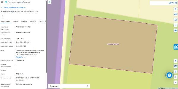 Название: Земельный участок с кадастровым номером 51:19:0010120:208 площадь 1500 по адресу Российская Федерация, Мурманская область