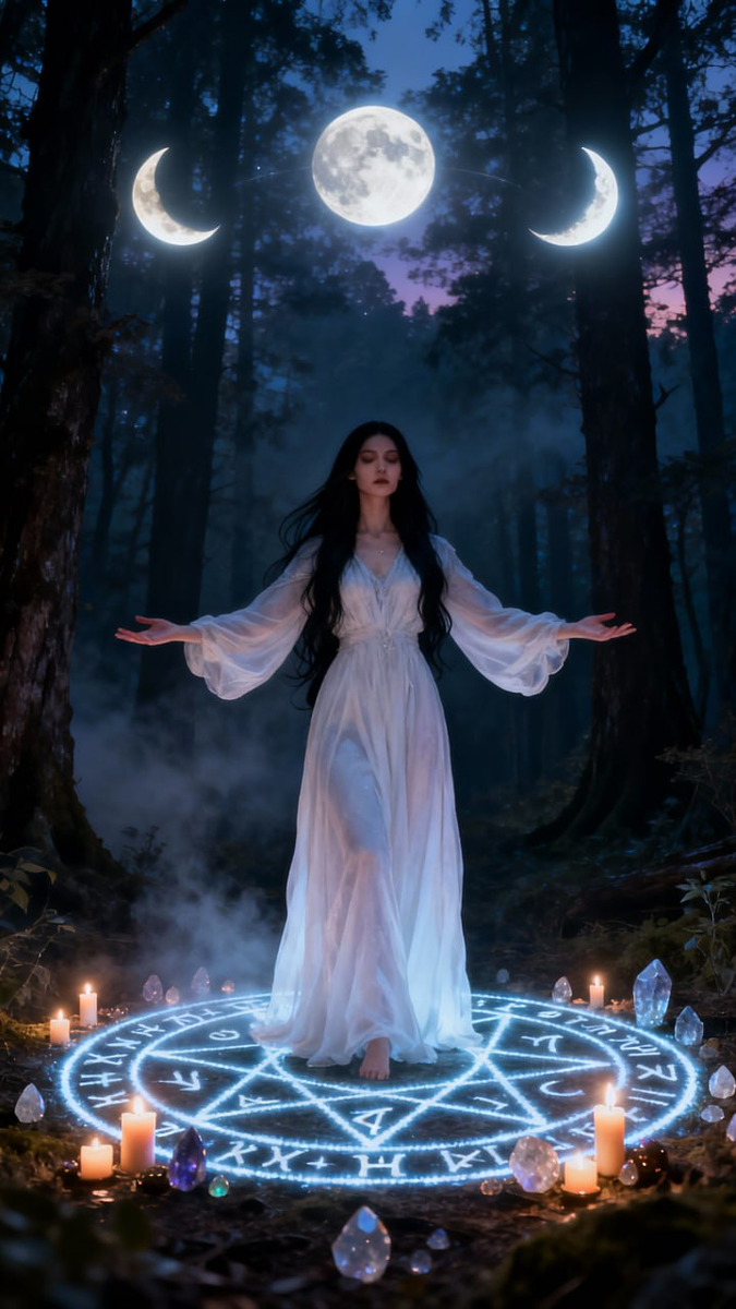 Луна — не просто спутник Земли. В магической традиции она — живое воплощение Великой Богини, которая являет себя в трёх ипостасях. Три лика, три возраста, три вида мудрости.