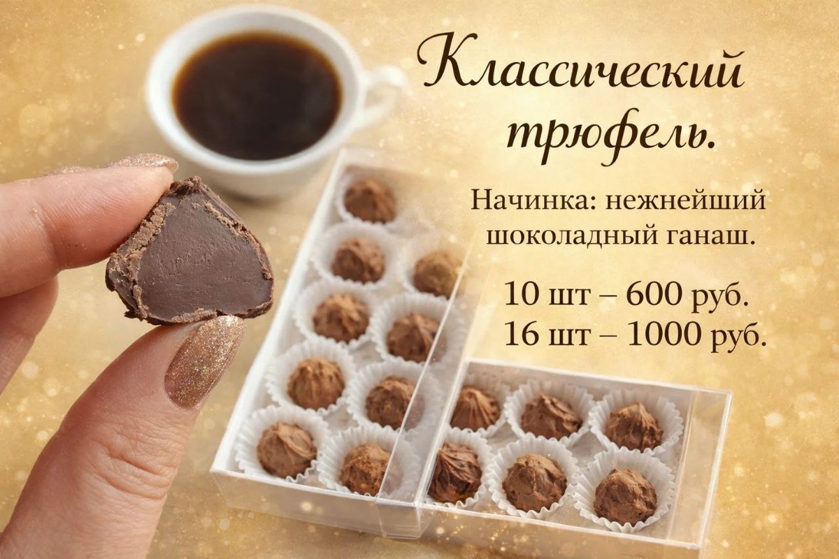 Классический трюфель — это не просто конфета. Это маленькое шоколадное чудо, которое дарит мгновение совершенства.🤗